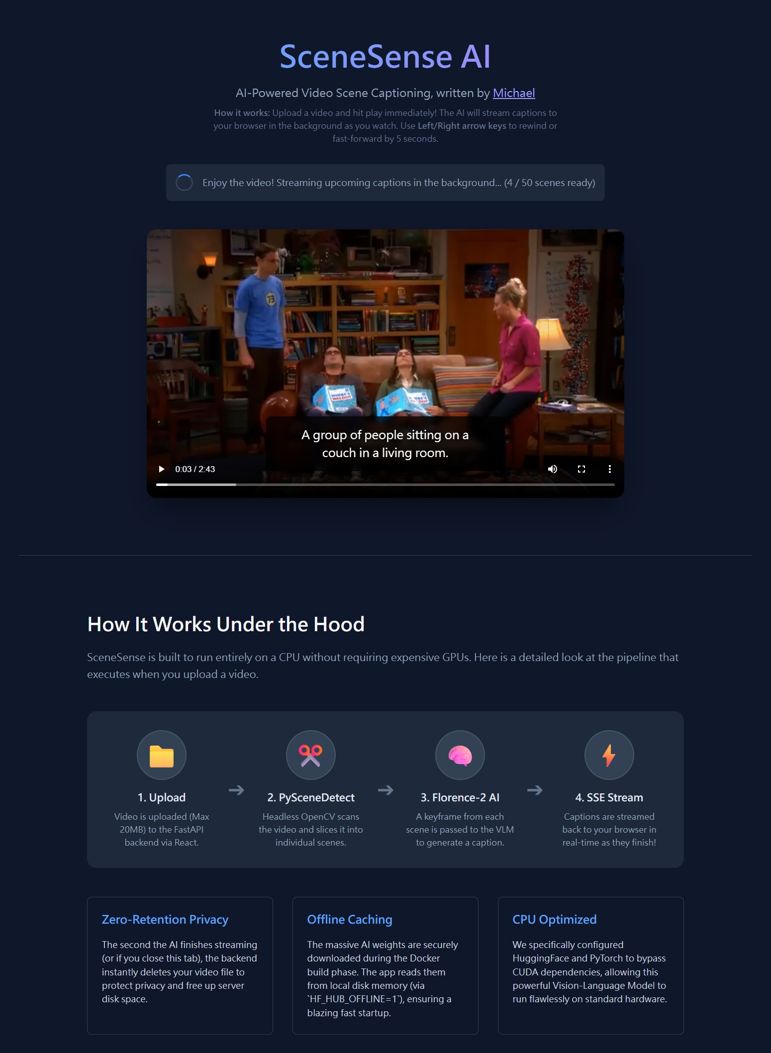 AI-Powered Video Scene Captioning app by Michael Wen